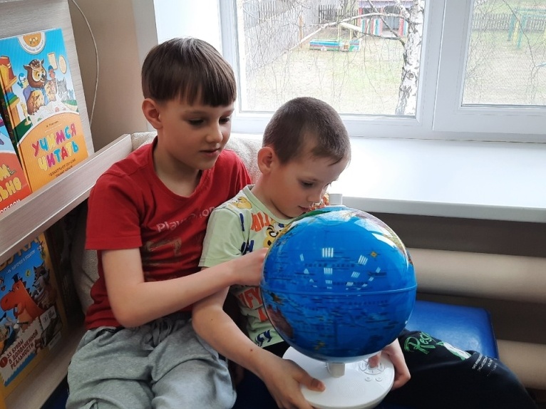 Попав в стены библиотеки, малыши окунулись во множество ярких, красивых, интересных книг и журналов, новой интерактивной техники. Рассмотрев глобус, удивились, что он сам может рассказывать сказки и факты о Земле.