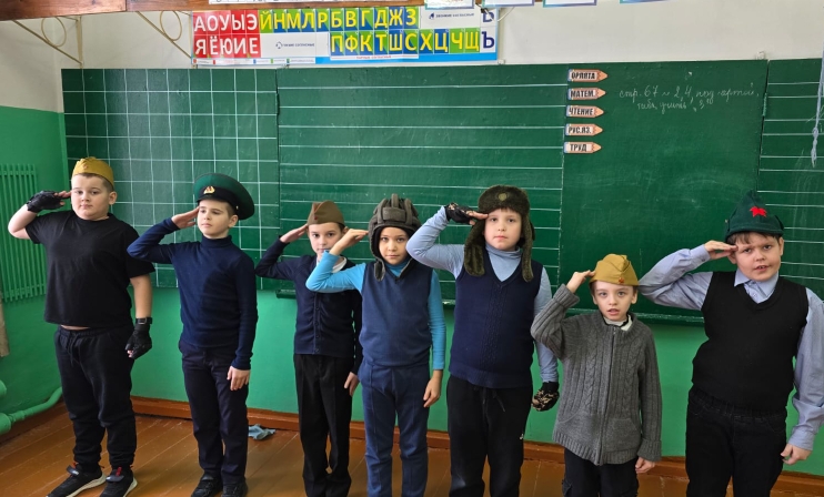Второклассники познакомились и с удовольствием примеряли головные уборы солдат разного времени, начиная от буденовки до современной шапки участника СВО.