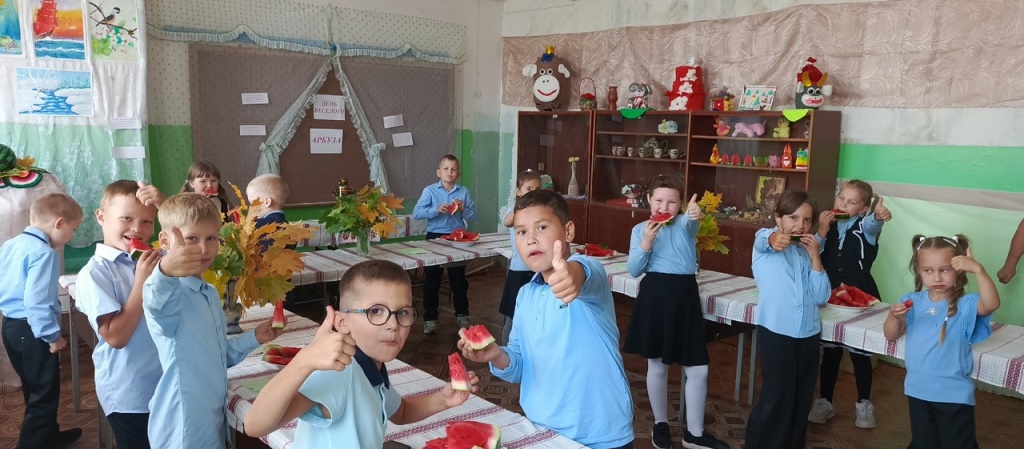Мероприятие было насыщенным и интересным. А в конце самое приятное и вкусное, на столе стоял спелый арбуз и звал полакомиться. Ребятам праздник очень понравился, потому что он был сочным и сладким! Конечно же не обошлось без фотосессии.