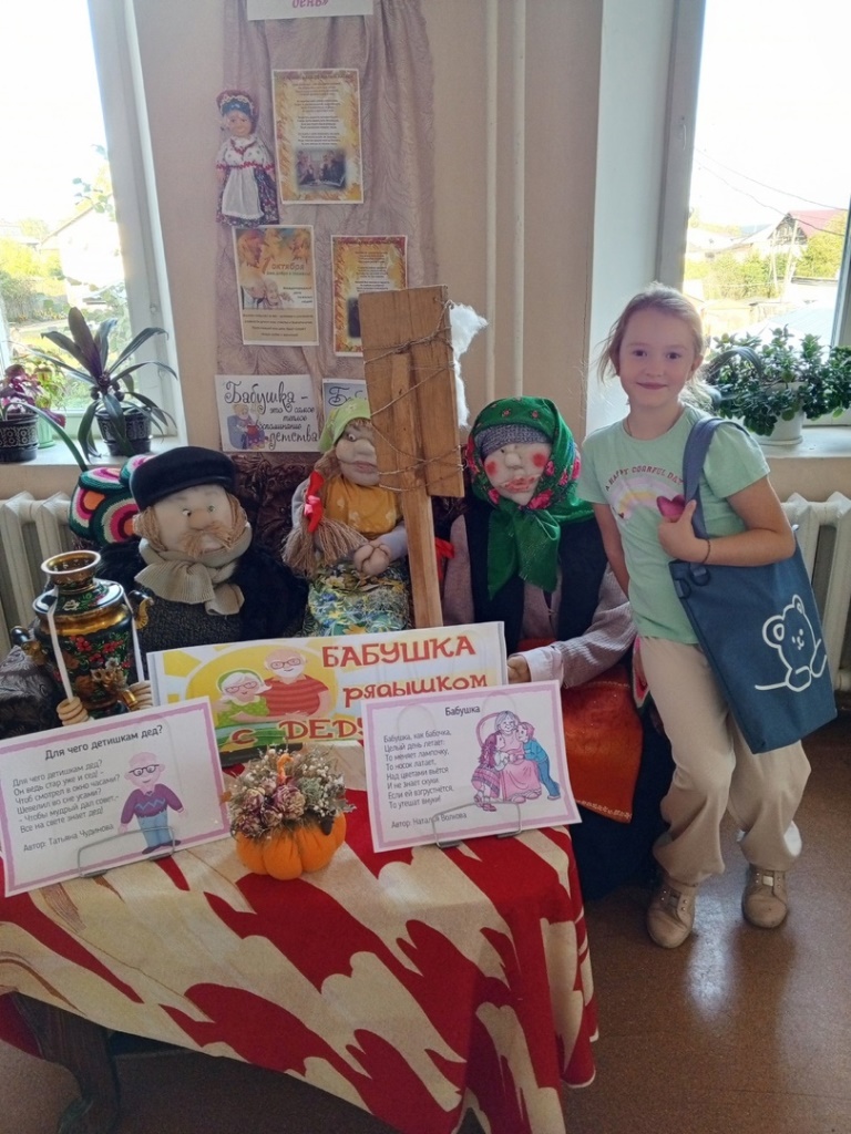 К такому празднику в библиотеке была открыта экспозиция предметов прикладного творчества «Днем мудрости зовется этот день». Образ бабушки, дедушки и внучки создан руками участников клуба «Волшебная мастерская». Творчество - это всегда открытие, открытие мира и красоты.