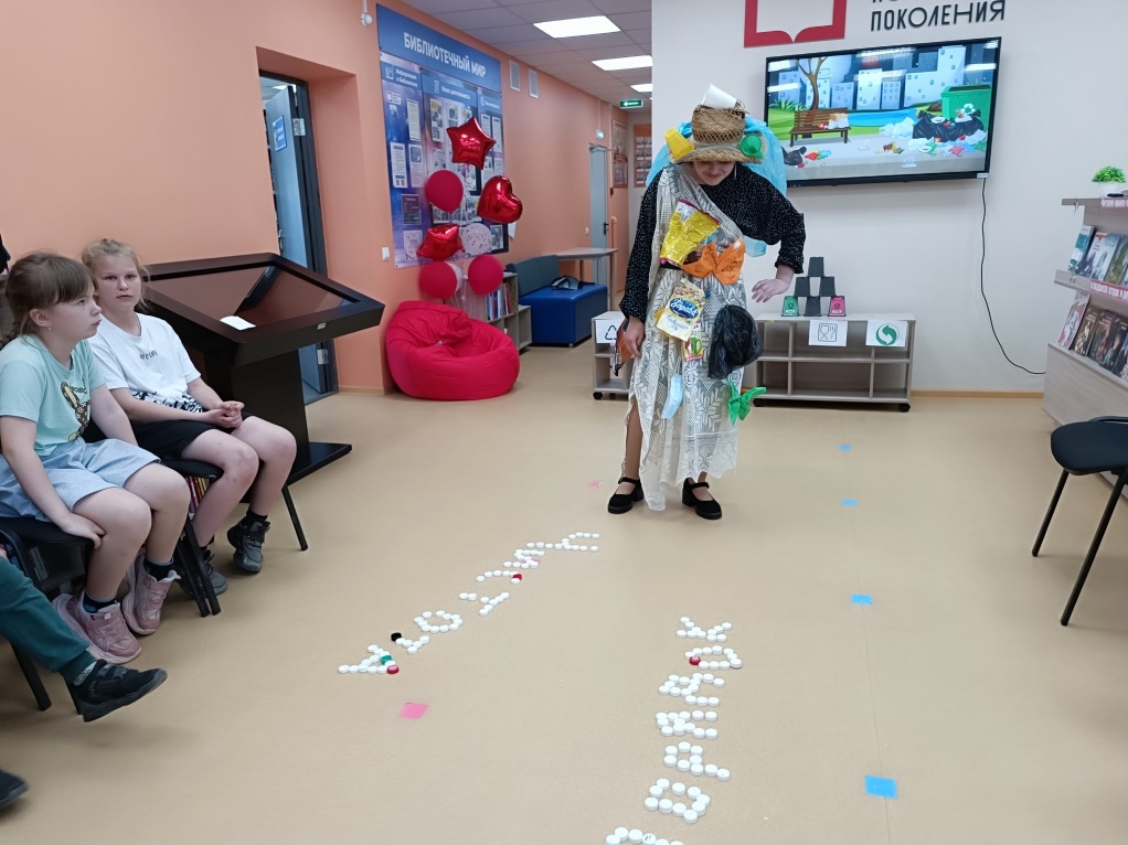 Дети пришкольного лагеря стали участниками увлекательного и познавательного экологического путешествия в город Грязи. Это место, благодаря стараниям людей, покрыли горы мусора, и его хозяйкой стала мадмуазель «Мусоросвалка». Ребята пришли на помощь жителям города Грязи, убрали с его улиц мусор, продемонстрировали знание экологических знаков и умение сортировать отходы. Дети побывали в роли мусоровозов, собирали и перевозили контейнеры на площадку. В ходе путешествия ребята решили расколдовать мадмуазель Мусоросвалку: из пробок выложили слова «чистота» и «порядок». Прочитав это заклинание, хозяйка города Грязи уснула, и пока спала, дети привели ее в порядок. Так мадмуазель превратилась в королеву города Чистоты и Порядка.