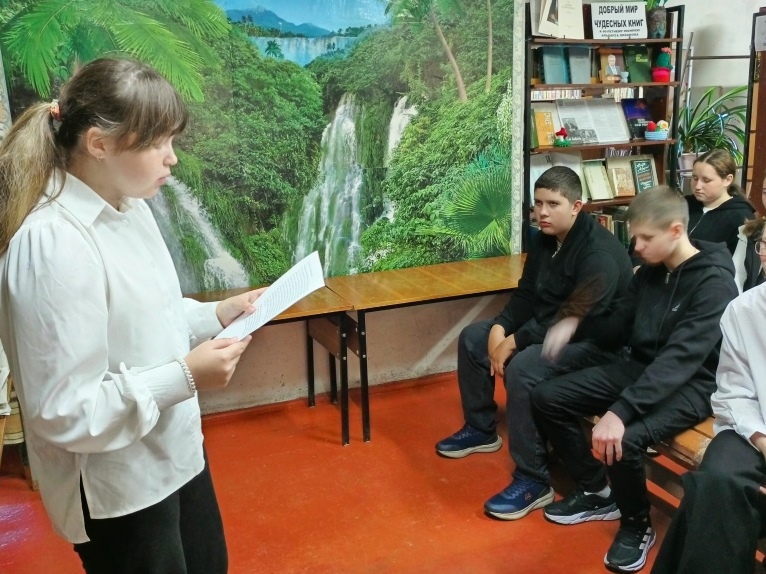 Подробно поговорили о книге «Драматическая педагогика». В повестях на тему военного тыла и детства «Теплый дождь», «Деревянные кони», «Вам письмо» рассмотрели острейшие сюжетные и психологические ситуации. В этом произведении приведены примеры настоящей дружбы, мужества, великодушия, сердечности. С детьми порассуждали о важности иметь твердый характер в преодолении трудностей.