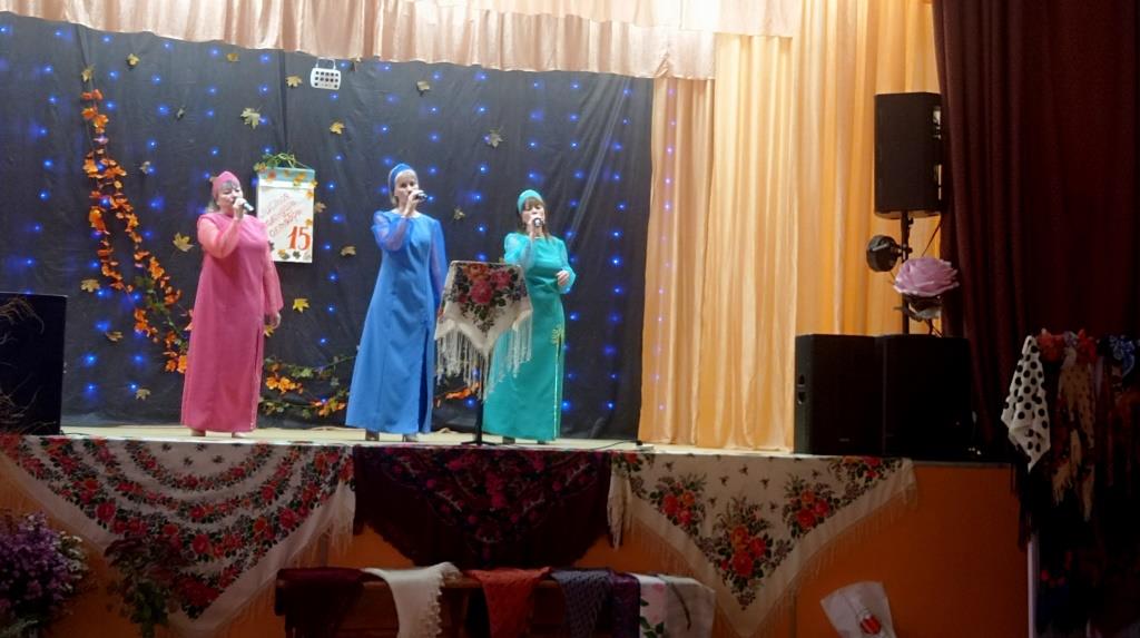 Женщинами был организован стол, за которым участницы рекламировали свои осенние заготовки из разных сортов варенья, выпечки, заготовки из овощей. Также к мероприятию была оформлена выставка-экспозиция «Плат, платок, платочек».
