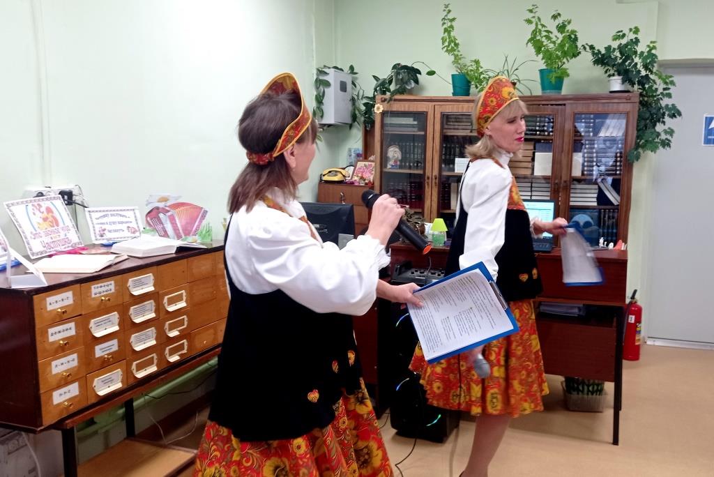 На хорошей позитивной ноте прошла в библиотеке фольклорная завалинка, посвященная одному из любимых жанров народного творчества - частушке. Гости программы узнали много интересного о происхождении и развитии частушек, их разновидностях и как они назывались в различных регионах страны. Гости активно принимали участие в увлекательной беседе. Присутствующие смогли попробовать себя в роли частушечников: вместе с ведущими программы исполняли задорные весёлые частушки, а также сочиняли свои частушечные шедевры.