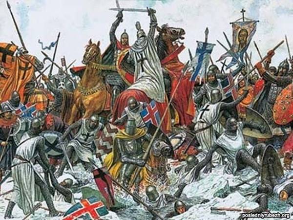 Невская битва - сражение между русскими и шведскими войсками на реке Неве. Целью вторжения шведов был захват устья реки Невы, что давало возможность овладеть важнейшим участком пути «из варяг в греки», находившимся под контролем Великого Новгорода. Воспользовавшись туманом, русские неожиданно напали на шведский лагерь и разгромили врага; только наступление темноты прекратило битву и позволило спастись остаткам шведского войска Биргера, который был ранен Александром Ярославичем. Князь Александр Ярославич за проявленное в битве полководческое искусство и мужество был прозван Невским. Военно-политическое значение Невской битвы состояло в предотвращении угрозы вражеского нашествия с севера и в обеспечении безопасности границ России со стороны Швеции в условиях Батыева нашествия.