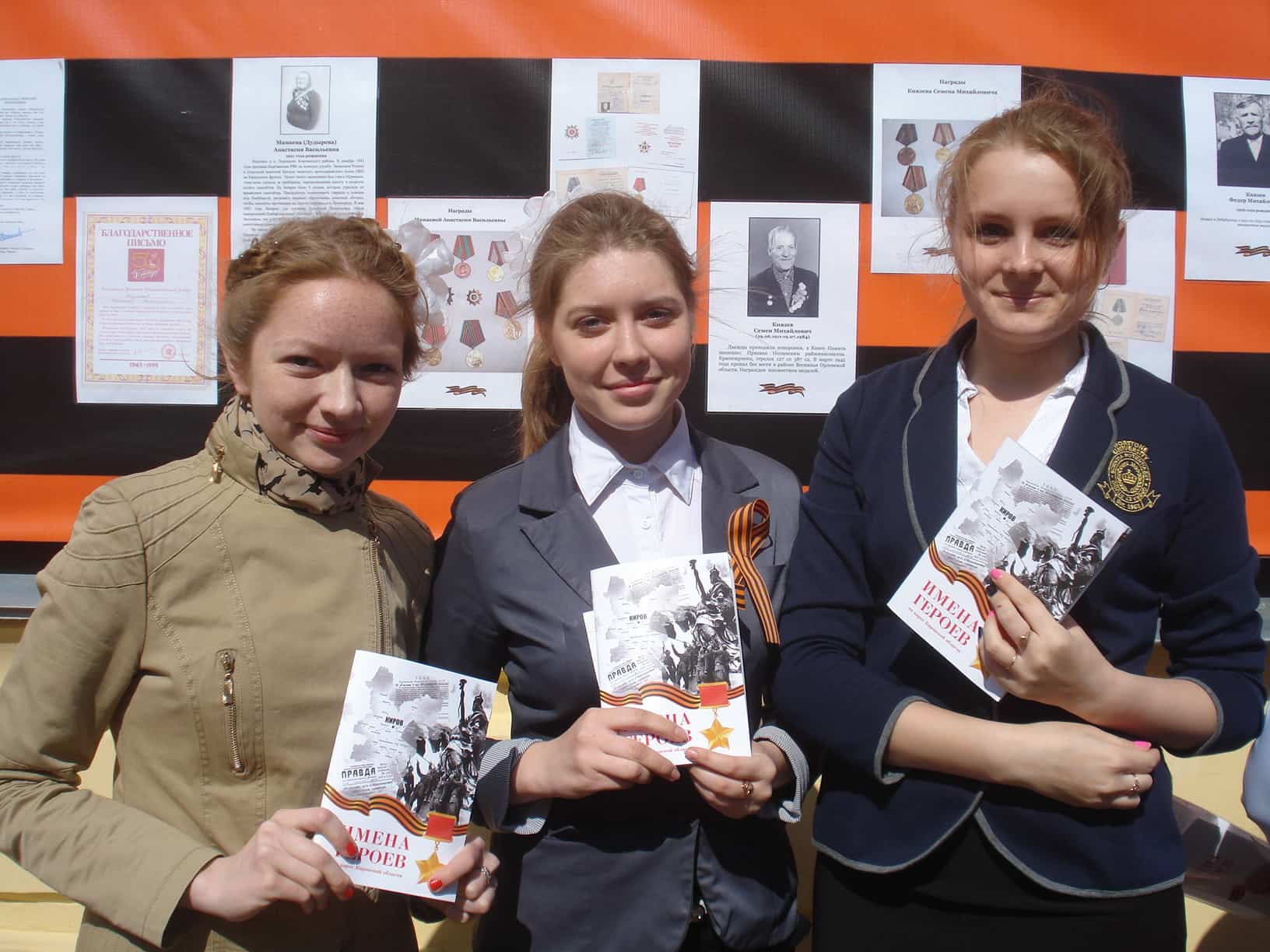 Год назад накануне празднования Дня Победы на здании центральной районной библиотеки появилась необычная георгиевская лента под названием "Победы родное лицо". Именно так мы решили почтить память наших земляков, погибших много десятилетий назад в Великой Отечественной войне, 2015 год - год 70-летия Победы, не стал исключением. 8 мая в 10.00 мы открыли нашу георгиевскую ленту. Удивительно, но люди очень трепетно отнеслись к возможности рассказать о своих воевавших родственниках и о тех, кто помогал фронту, работая в колхозах и на заводах. Многие принесли нам очень интересные материалы, исторические документы и фотографии. К нашей ленте подходит практический каждый, кто идет мимо, даже если он спешит. Не остановиться невозможно. С фотографий на нас смотрят наши предки, наши семьи, наша история. Люди с благодарностью прикалывают цветы к этим черно-белым фото. Хочется верить, что эта акция нашла отклик в сердцах нолинчан. Большое всем спасибо!