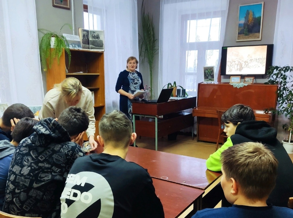 Ученики КОГОБУ ШИ ОВЗ №2 г.Нолинска пришли в Нолинскую центральную районную библиотеку на час памяти «Город стойкости и славы». Старшеклассники рассмотрели постеры картин художников, запечатлевших блокадный Ленинград. Библиотекарь рассказала о деятельности ленинградских художников по сохранению и эвакуации картин, защитной маскировке храмов и памятников. В конце мероприятия юноши под руководством педагога изготовили светоотражающие «светлячки».