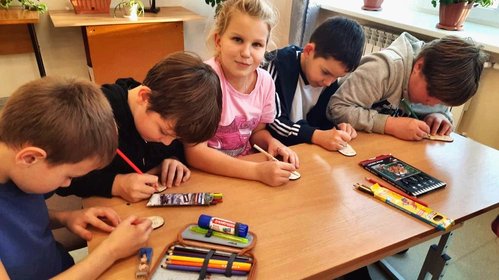 В ходе мероприятия школьники узнали об известных жителях Вятского края, рассмотрели герб и нашли его среди других гербов, собрали карту Кировской области, нашли на карте свое село. Познакомились с разными видами народных промыслов: дымковской игрушкой, кукарским кружевом и настоящей русской красавицей – матрешкой. Затем участникам раздали фигурки - матрешки, вырезанные из фанеры, которые ребята ярко разрисовали.