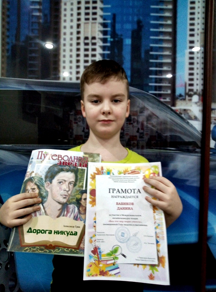 Бабиков Даниил, учащийся 3 «а» класса школа г. Нолинска, награждён грамотой за участие в конкурсе. Поздравляем Даниила от всей души и желаем новых творческих побед!