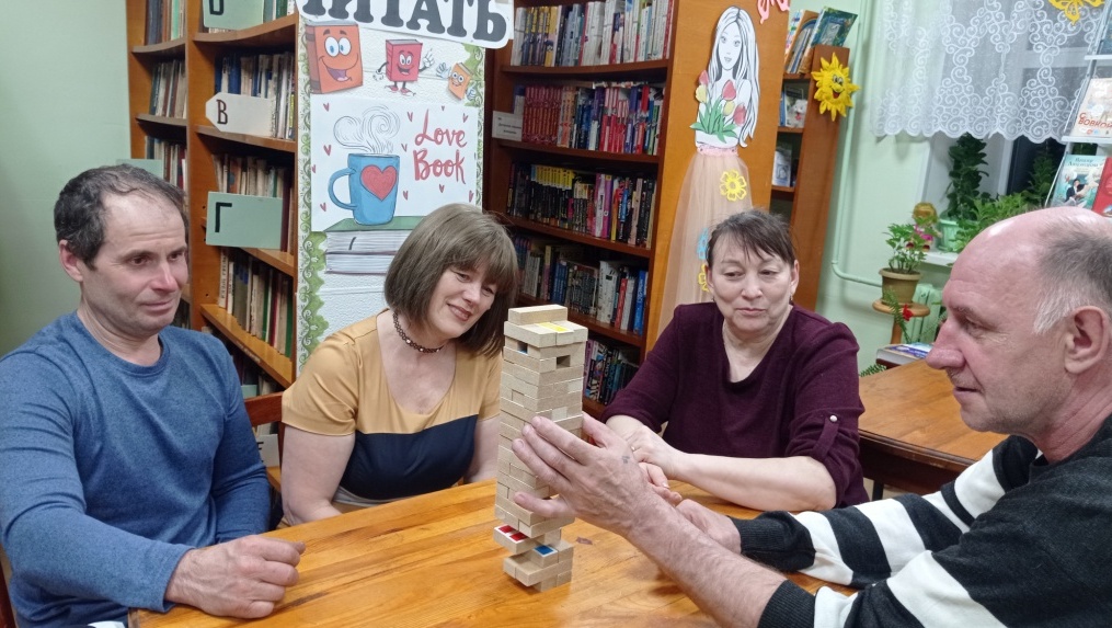 Участники отвечали на вопросы выставки-викторины «Дружим с книгой всей семьей»; смотрели весёлый видео - ролик «Случай в библиотеке»; играли в литературное лото, где продемонстрировали свои знания в вопросах литературы; в увлекательной игре «Дженга» строили башни из блоков, с заданием; участвовали в караоке-баттле «Герои книг зовут в кино», где вспомнили самые известные и проникновенные песни из экранизированных художественных произведений.