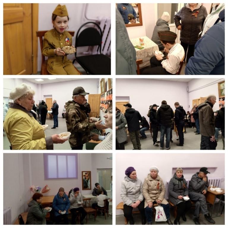 При выходе в фойе, всех ждала традиционная солдатская каша.