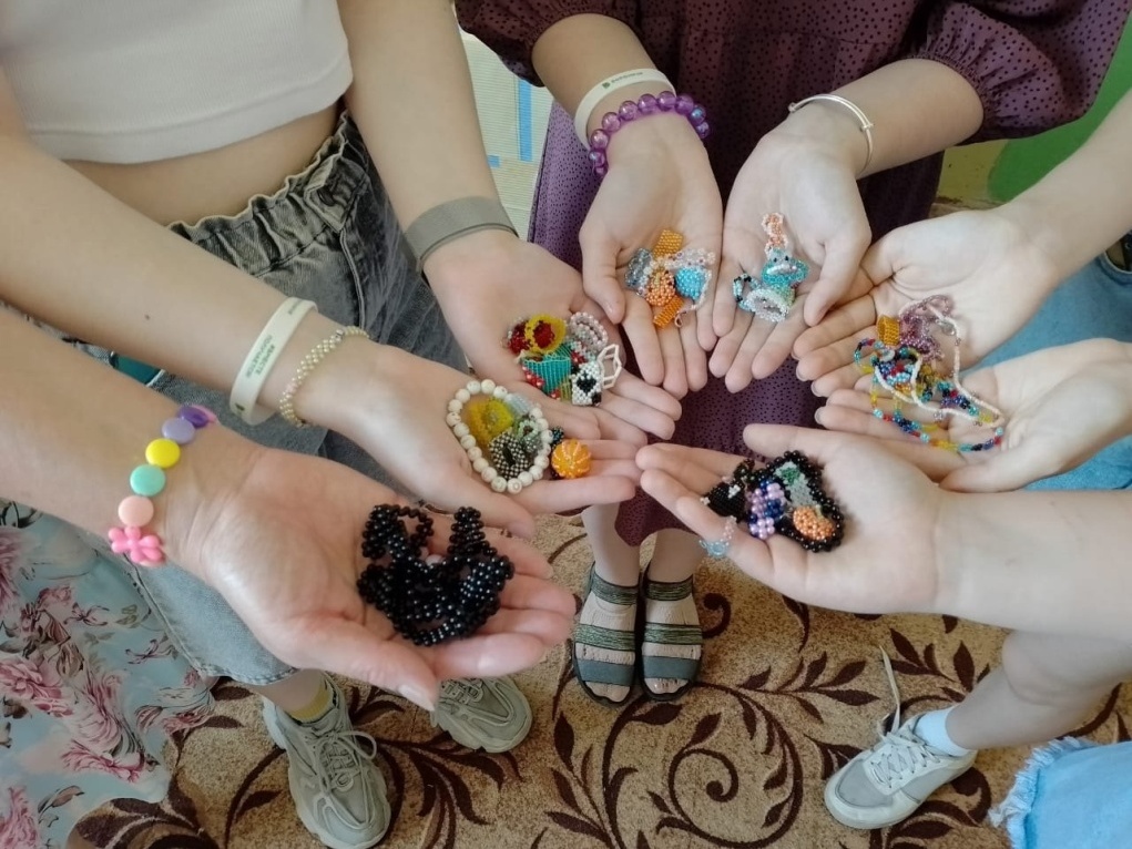 Очередным занятием в Нолинской детской библиотеке в клубе «Волшебная мастерская» стало бисероплетение.