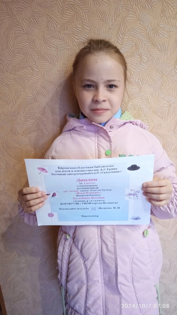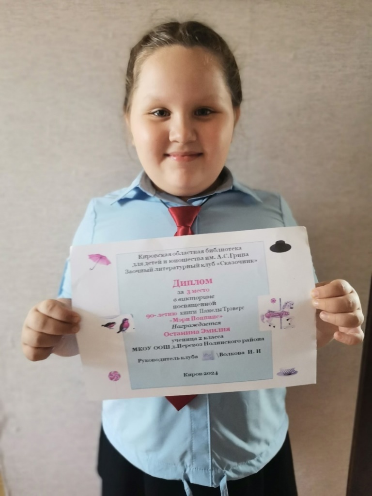 2 место у Соловьёвой Алины (2 класс, г. Нолинск).