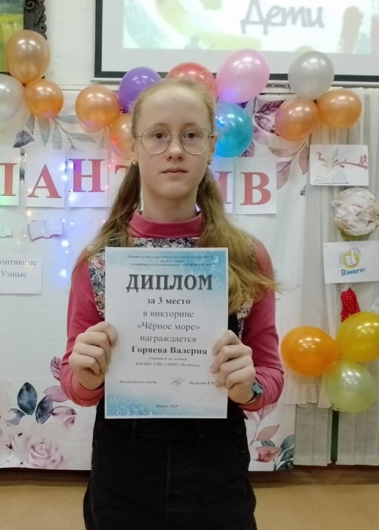 Кировская областная библиотека для детей и юношества имени Александра Грина и заочный клуб "Юный эрудит" провели викторину "Чёрное море".