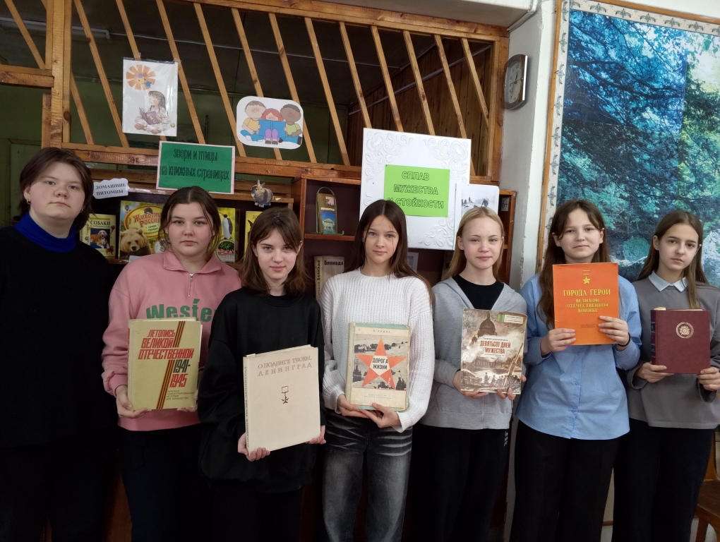 Читатели познакомились с художественной литературой и документальными изданиями о блокаде Ленинграда: библиотекарь провела обзор литературы, посвященной этому событию, зачитала отрывки из «Блокадной книги», А.Адамовича и Д.Гранина, ребята рассмотрели иллюстрации из книг «Дорога жизни», «Девятьсот дней мужества», «О подвиге твоем, Ленинград», для читателей прозвучала песня на слова В.Коростылева «Ленинградские мальчишки».