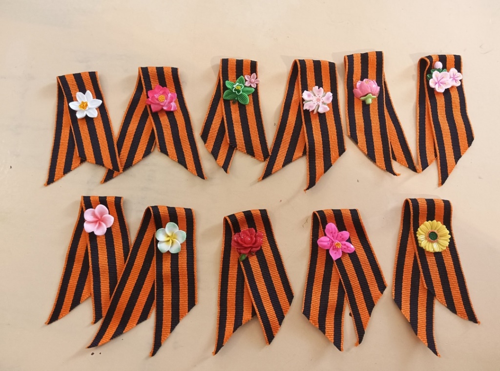 Школьники делали броши-значки с георгиевской лентой и открытки. Эти поделки будут вручены детям войны, труженикам тыла.