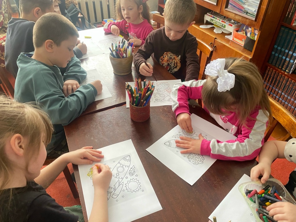 Ребята с удовольствием окунулись в мир звезд и планет. В ходе программы дети вспомнили, что первыми в космосе побывали собаки Белка и Стрелка, а затем — Юрий Алексеевич Гагарин. Во время занятия ребята не только получали новую информацию, но и с большим удовольствием собирали ракету из геометрических фигур, разгадывали загадки о космических объектах, проверяли себя на внимательность, смотрели мультфильм «Белка и Стрелка. Озорная семейка», раскрашивали ракету. Особый восторг у ребят вызвали подвижные игры.