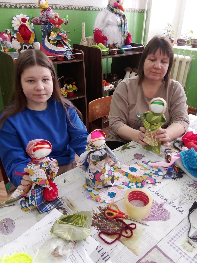 Вот так, с большим старанием и умением у каждого появилась кукла оберег СемьЯ. Поселились такие куклы обереги и в нашей детской библиотеке!