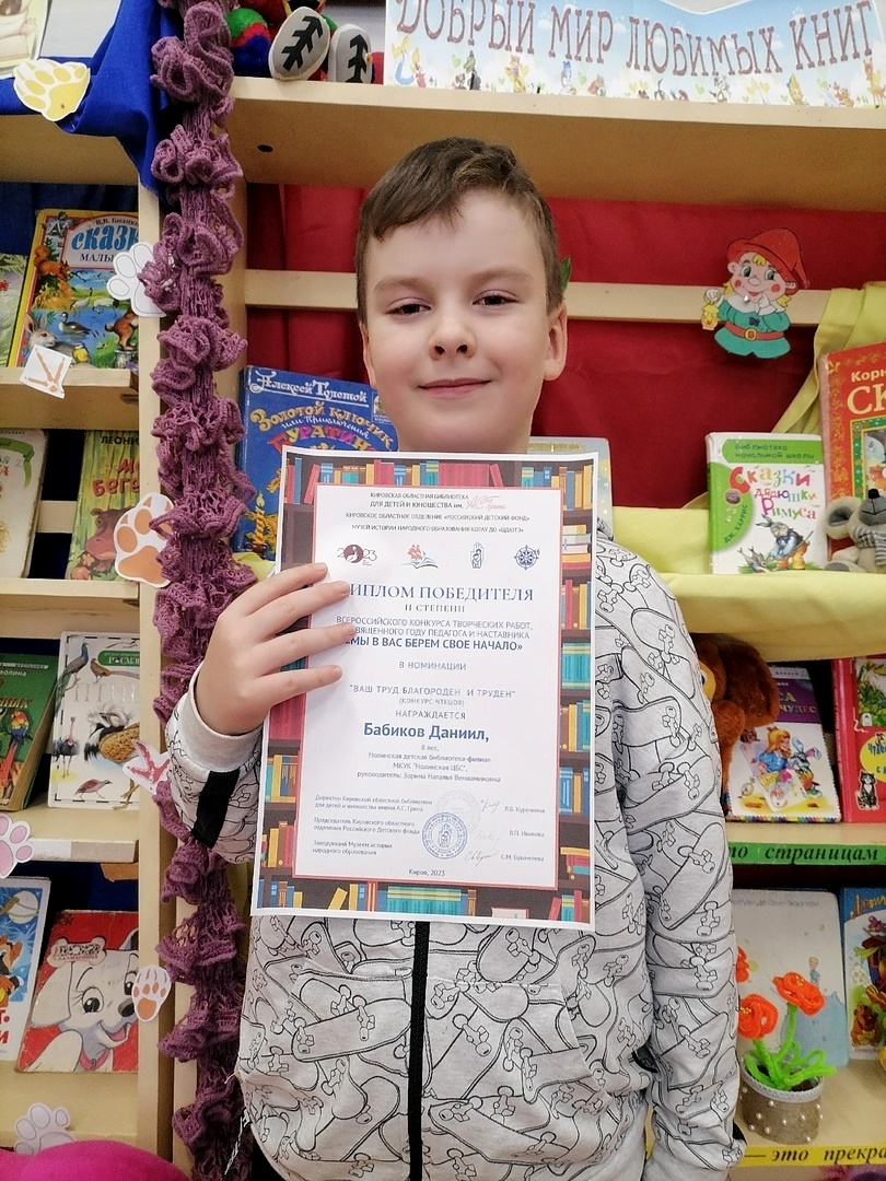 Бабиков Даниил, учащийся 3 "а" класса школы г. Нолинска, награждён Дипломом 2 степени и памятным подарком!