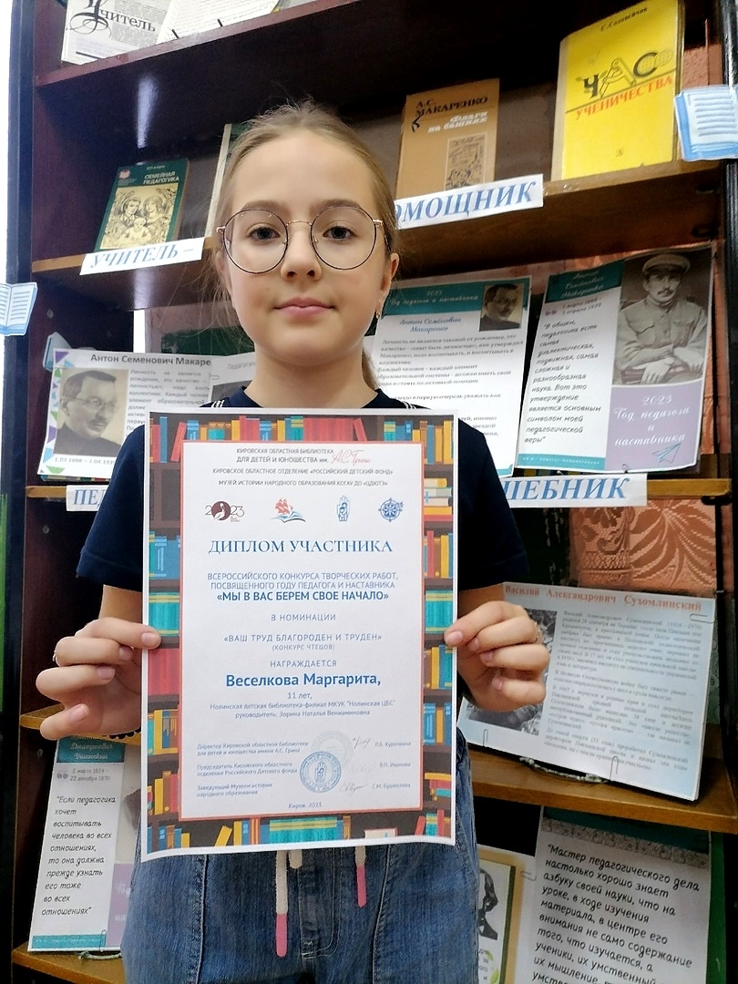 Веселкова Маргарита, учащаяся 6 "а" класса школы г. Нолинска, награждена Дипломом участника!