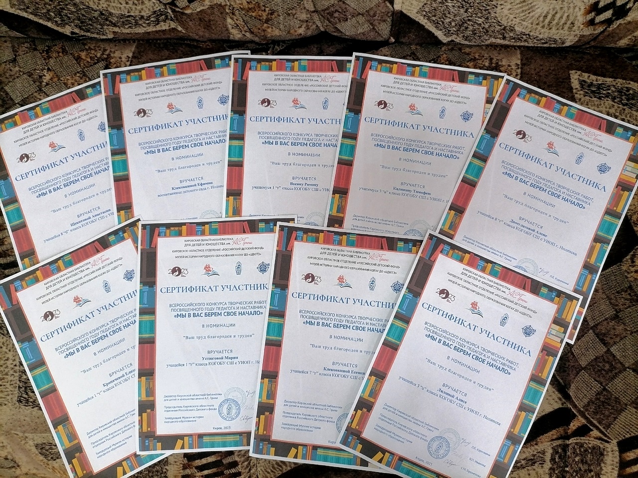 Остальные участники конкурса награждены Сертификатами участников: