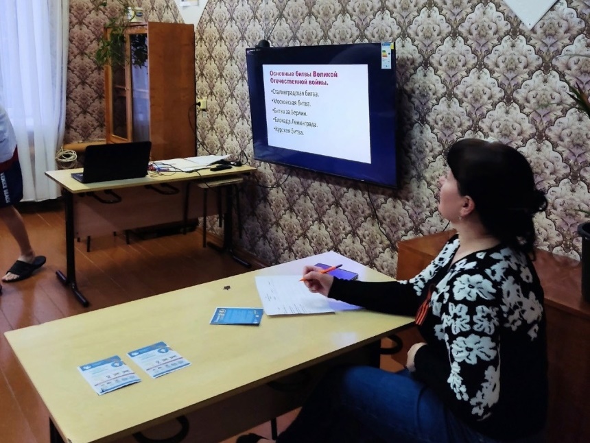 Библиотекарь центральной библиотеки рассказала молодым людям о Героях Советского Союза, уроженцах Нолинского района. Участники мероприятия, разделившись на три команды, проявили знания истории Великой Отечественной войны, отвечая на вопросы викторины и выполняя интерактивные задания.