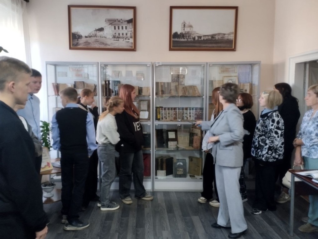 Экскурсанты посетили «Музей библиотечного и книжного дела провинции». Они с удовольствием перелистали страницы редких книг. Интерес у ребят вызвала и карта Нолинского уезда 1887 года, на которой отмечены библиотеки, открытые на денежные средства по завещанию Ф.Ф. Павленкова, известного издателя конца XIX века.