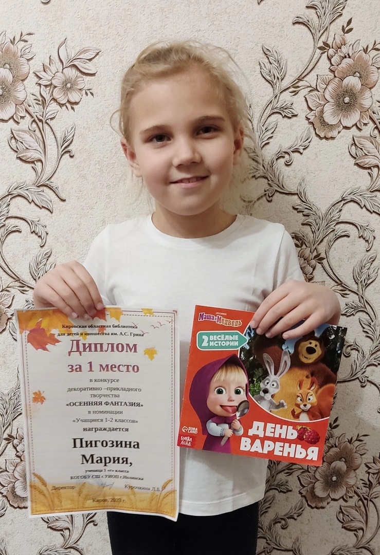 Пигозина Мария, учащаяся 1" г" класса школы г. Нолинска, заняла 1 место в номинации "Учащиеся 1-2 классов".