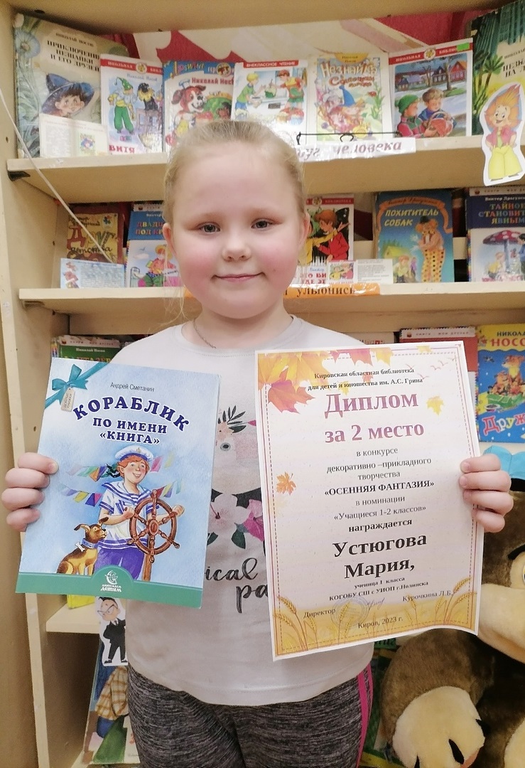 Устюгова Мария, учащаяся 1 "г" класса школы г. Нолинска, заняла 2 место в номинации "Учащиеся 1-2 классов".