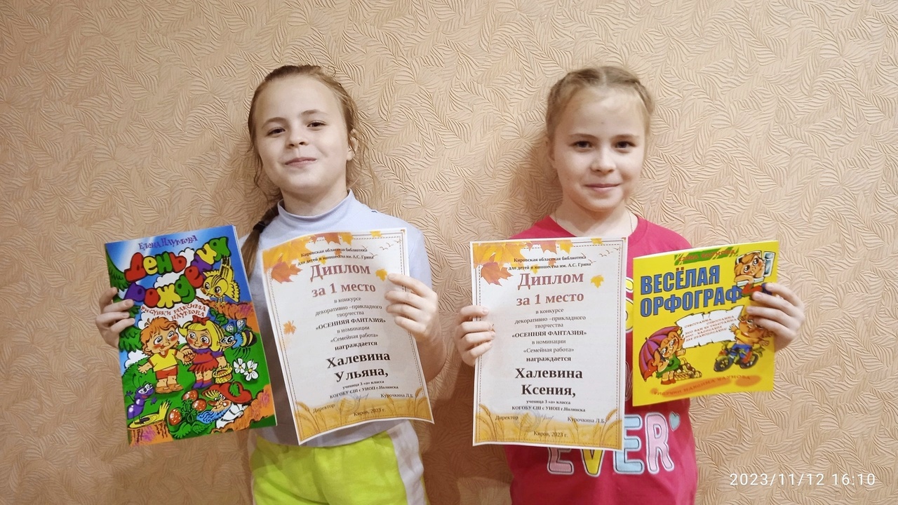 Халевина Ульяна и Халевина Ксения, учащиеся 3 "а" класса школы г. Нолинска, заняли 1 место в номинации "Семейная работа".