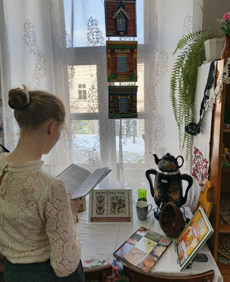 Учащиеся КОГОБУ ШИ ОВЗ № 1 г. Нолинска посетили выставку "Перекресток культур. Традиции и современность", размещенную в читальном зале Нолинской центральной районной библиотеки.