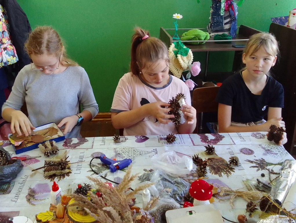 Мастер-класс «Природы яркий сарафан», прошедший в рамках клуба «Волшебная мастерская», был посвящён работе с природным материалом. Посмотрев имеющиеся у нас осенние сокровища, начали фантазировать, что же может получиться? А получились невероятно красивые поделки!