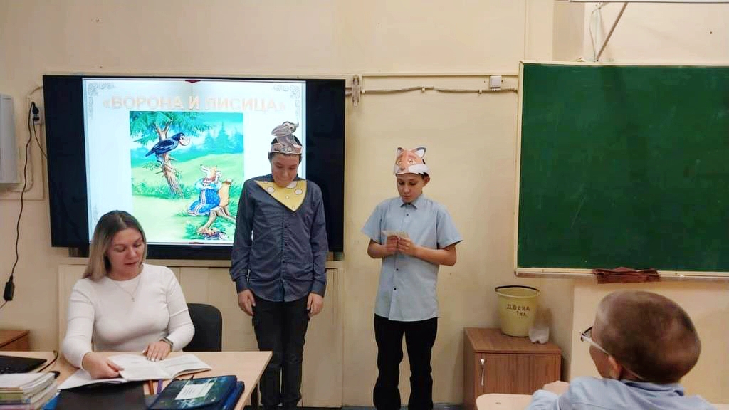 Дети посмотрели театрализованное представление басен «Ворона и Лисица» и «Стрекоза и Муравей», и попробовали сами выступить в роли артистов, примерили на себя роли героев басни «Ворона и Лисица», самого знаменитого произведения писателя.