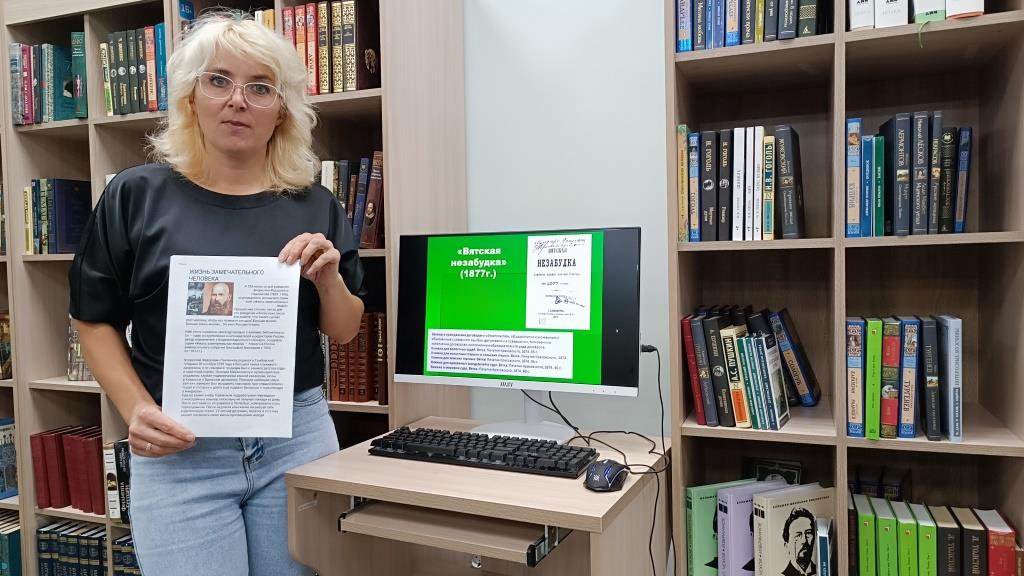В честь этого знаменательного события в клубе «Истоки» Шварихинской СБФ прошел библиотечный урок под названием «Сияет свет павленковской лампады», в ходе которого юные читатели открыли для себя много интересного об этом удивительном человеке. Библиотекарь рассказала ребятам о жизни и деятельности Павленкова, о периоде его вятской ссылки и о главном деле всей жизни - просвещении простого российского народа и создании бесплатных библиотек.
