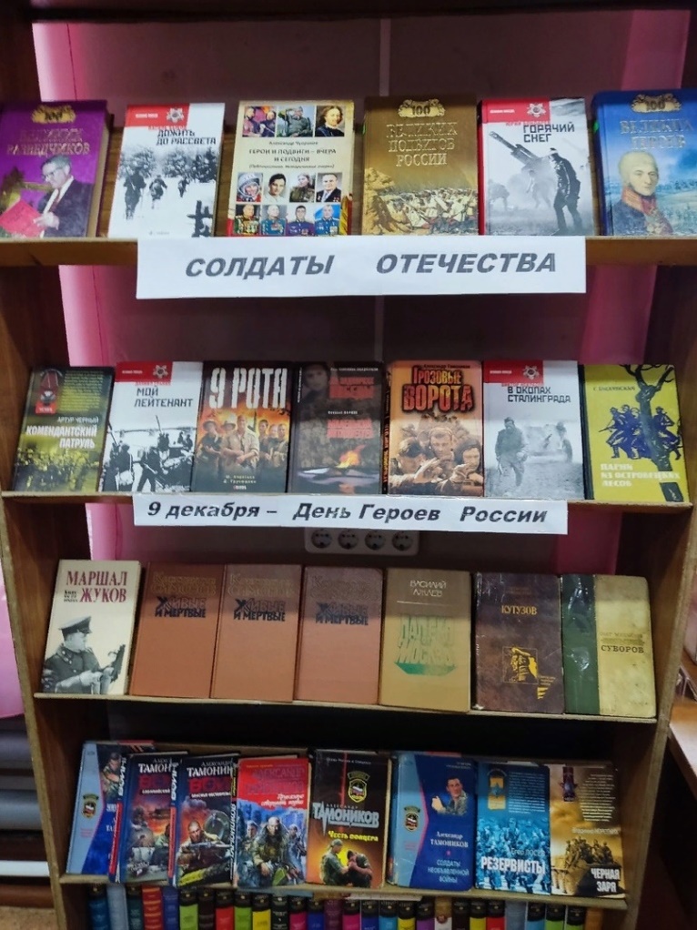 На абонементе размещена выставка книг «Солдаты Отечества», посвященных героям Великой Отечественной войны, военных конфликтов последних лет, полководцам и солдатам.
