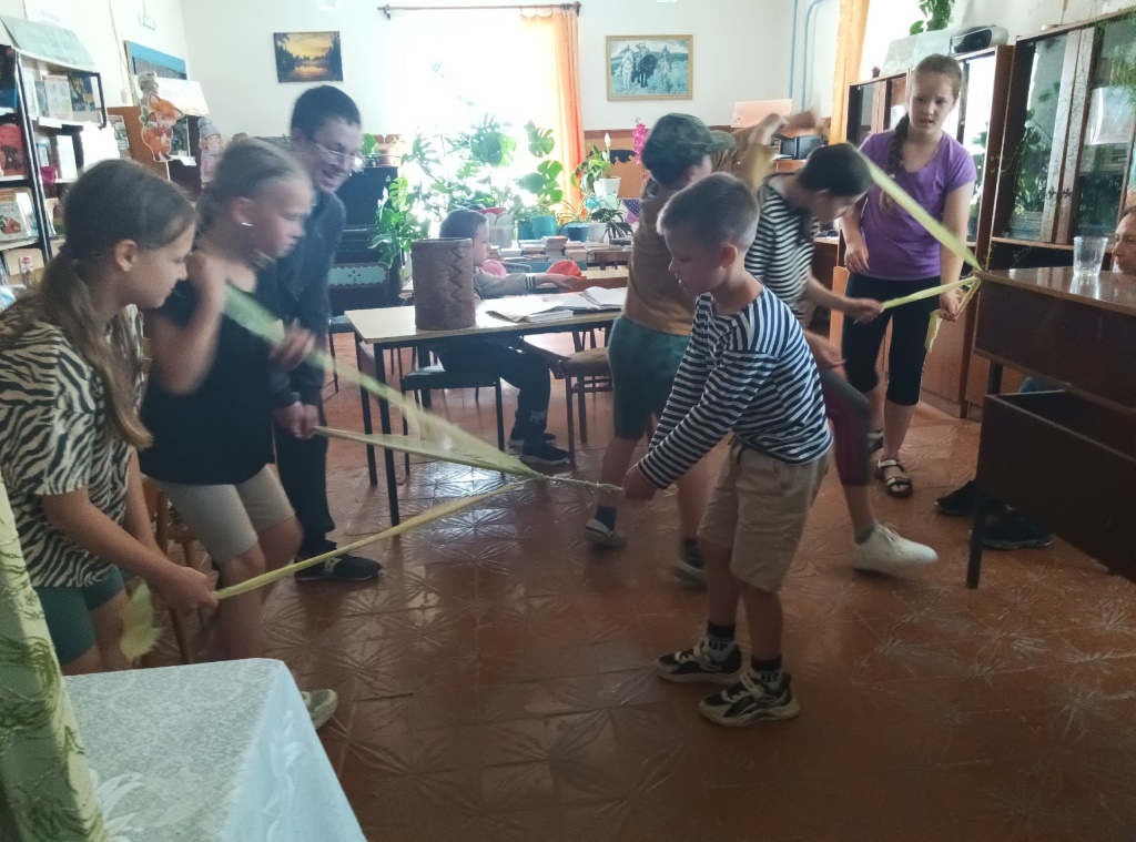 Зыковская библиотека пригласила детей школьного лагеря на познавательную игру "Троица. Зелёные святки". В праздник отмечается юбилей нашего села - 375 лет с года его основания. В нашем селе к этому празднику особое отношение. Это престольный праздник. На территории села расположен храм названный в честь святой Троицы. В церкви проводится праздничная служба. В Троицу принято подводить итоги за год, поздравлять юбиляров, выпускников, поздравлять молодоженов.