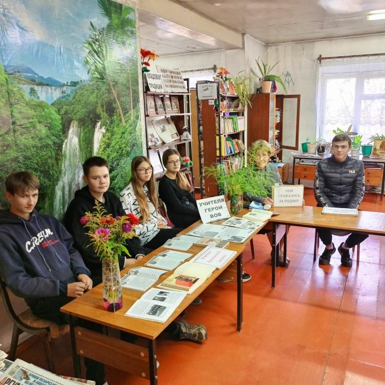Для членов клуба «Юность» состоялся информационный час «Учителя – герои Великой Отечественной войны». Война явилась тяжелым испытанием для системы народного просвещения. Многие учителя ушли на фронт по призыву, добровольцами, а оставшиеся в тылу продолжали вести уроки, иногда в неотапливаемых помещениях, испытывая недостаток и в материальной учебной базе, и лишения в быту. Вятские парни мужественно сражались за Родину, проявляя чудеса храбрости и героизма.