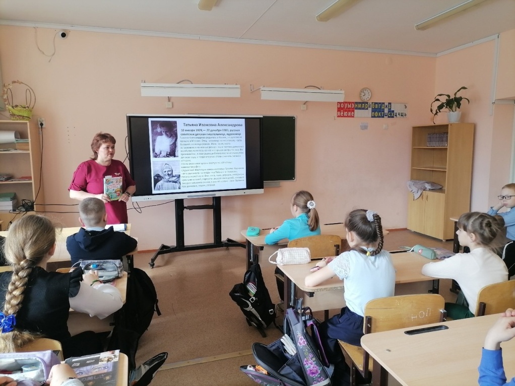 Дети узнали о знаменитой детской писательнице, сказочнице, художнике-мультипликаторе, иллюстраторе Татьяне Ивановне Александровой, которая родилась в 1929 году в семье инженера и врача. Ее родители очень много работали, за Таней и ее сестрой присматривала няня Матрешенька, так ее ласково называли дети. Именно от няни впервые услышала будущая писательница истории про леших и домовых.