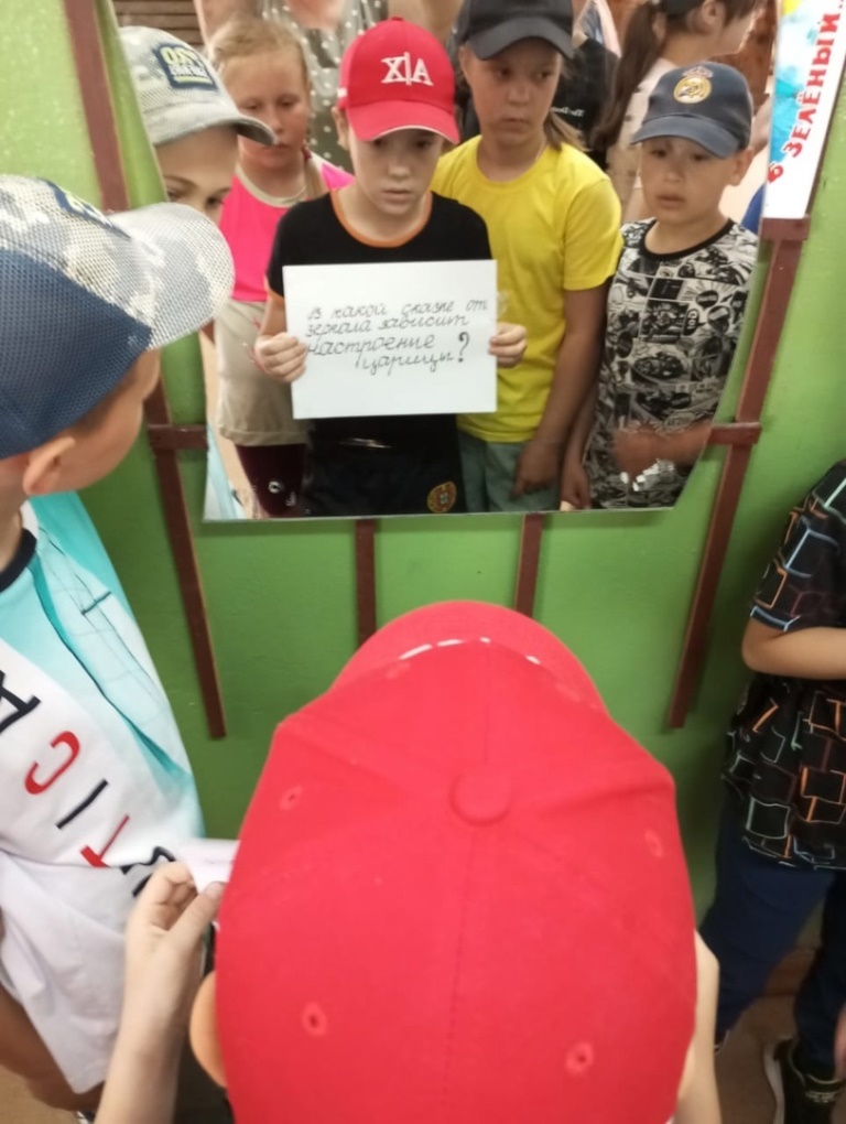 Участники квеста получили задание пройти через несколько объектов «Волшебной страны» Пушкина. Ведущаяя поставила перед ребятами непростую задачу: в «Замке Черномора» необходимо отыскать скрытые подсказки в книгах Пушкина, разгадать кроссворд, найти ключевое слово и отыскать шифровку, которую можно прочитать только с помощью зеркала.