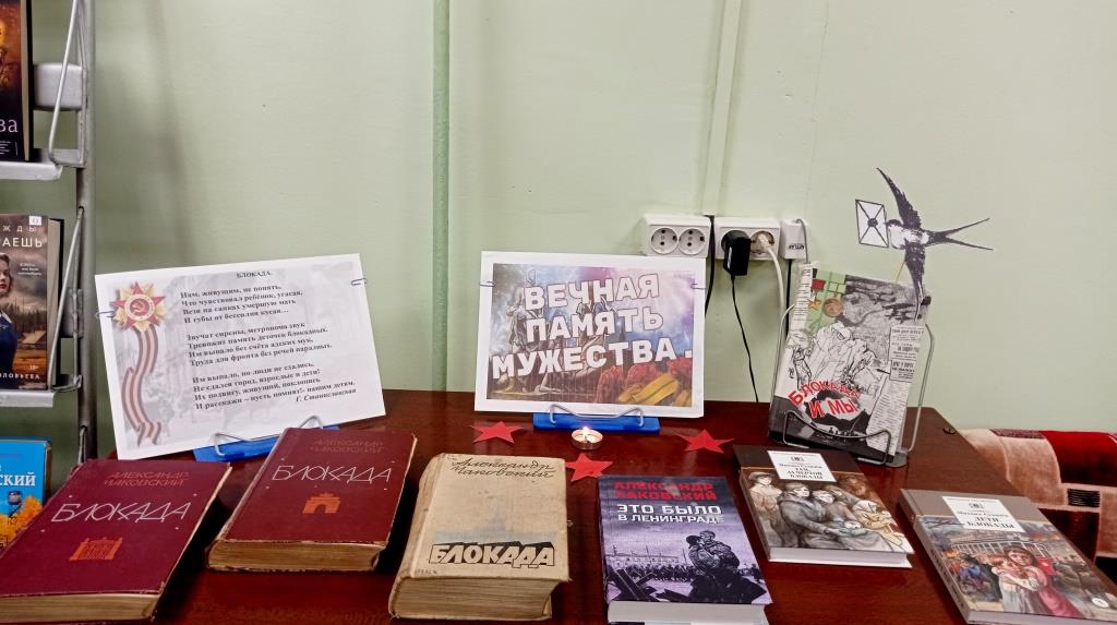 К этой дате в Лудянской библиотеке оформлена выставка художественной литературы «Вечная память мужества». Из представленных книг на выставке, читатели узнают о патриотизме, отваге, мужестве и стойкости защитников блокадного города и его жителей – детей и взрослых, сумевших выстоять в нечеловеческих условиях блокады, переживших страшный голод, страдания, смерть близких, и веривших в победу над немецко-фашистскими захватчиками.