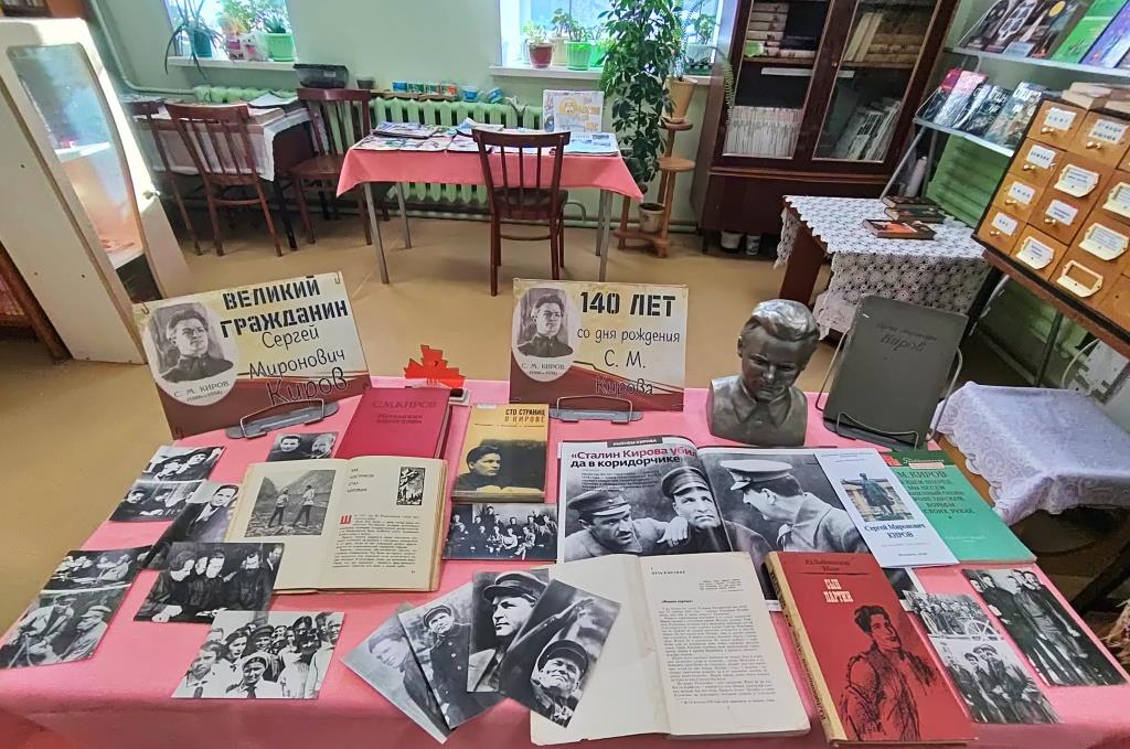 В библиотеке оформлена выставка-досье, приуроченная к юбилейной дате революционера, политика, имя которого носит наш областной центр. На выставке представлены книги из фондов библиотеки, которые дадут возможность глубже погрузится в историю нашей страны через призму судьбы одного из её ключевых деятелей. Представленная литература расскажет о жизни и деятельности советского партийного и государственного деятеля Сергея Мироновича Кострикова, в 1912-ом году взявшего псевдоним Киров. Также на ней представлены открытки и фотографий. На одних Кирова можно увидеть в кругу семьи, на других - за трибуной и рядом с известными политическими деятелями. Выставка позволит увидеть не только политического деятеля, но и человека своего времени - с его идеями и стремлениями. (Возрастное ограничение 12+)