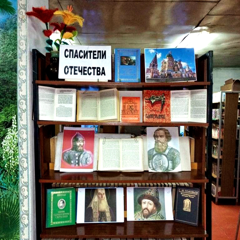 Книжная выставка «Спасители Отечества» дополнила мероприятие.