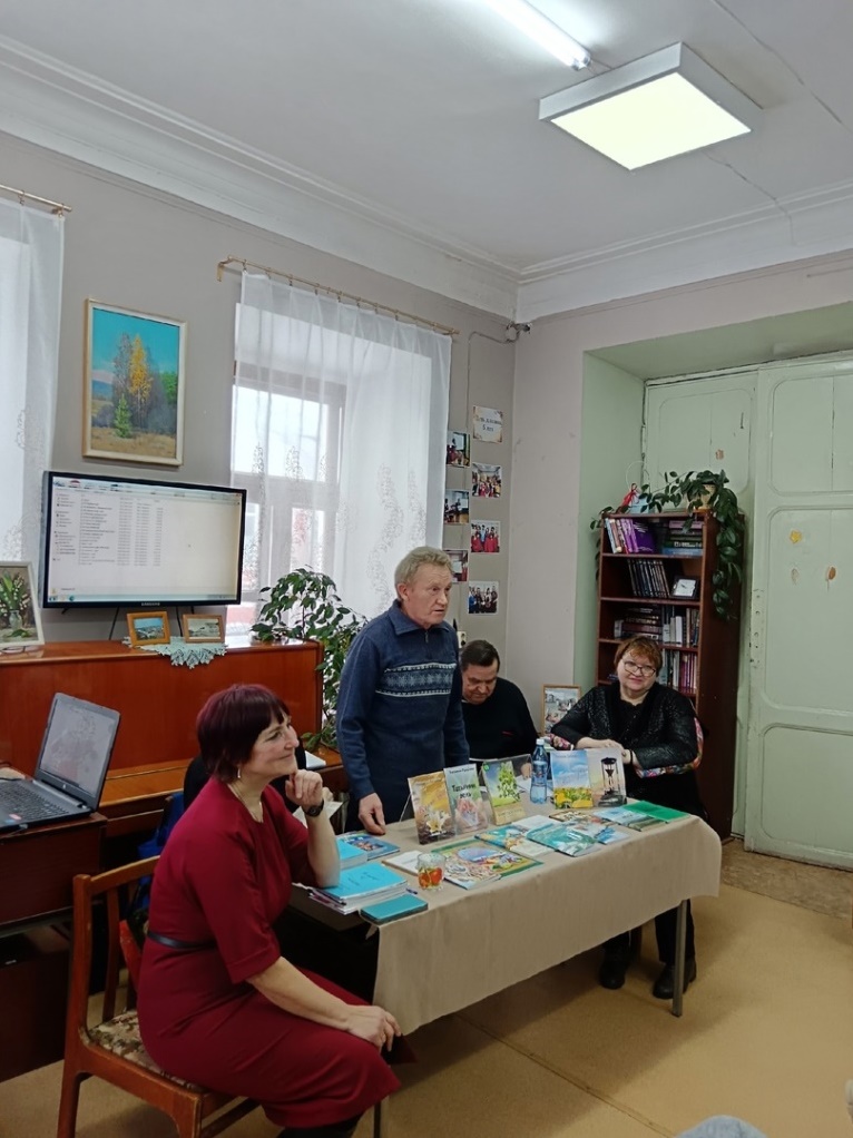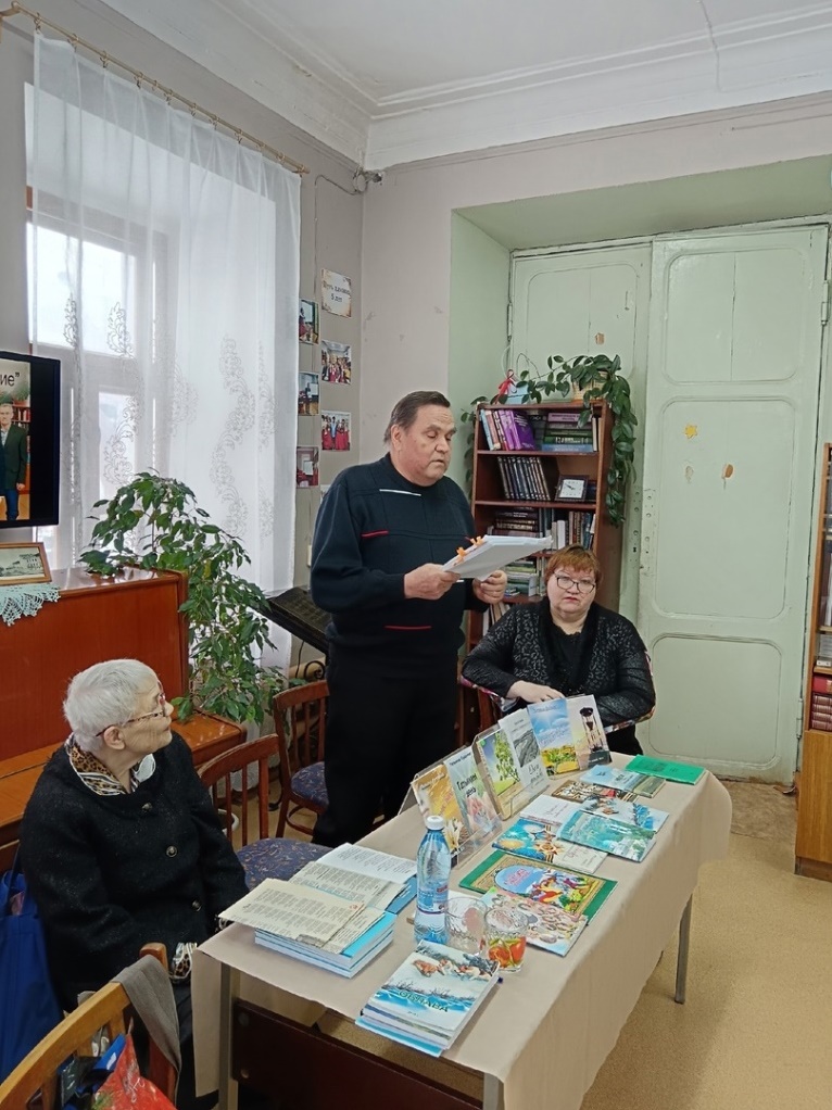 В читальном зале библиотеки состоялась встреча учеников 8-а класса городской школы (классный руководитель Е. Н. Губина) с членами клуба поэтов «Воскресение», посвященная Году защитника Отечества.