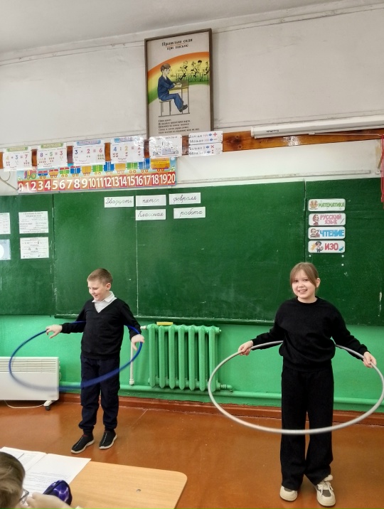 Программа часа была интересной и разнообразной, задания на сообразительность и внимание чередовались с физическими упражнениями, соревнованиями с обручем, «мультяшными» физкультминутками.
